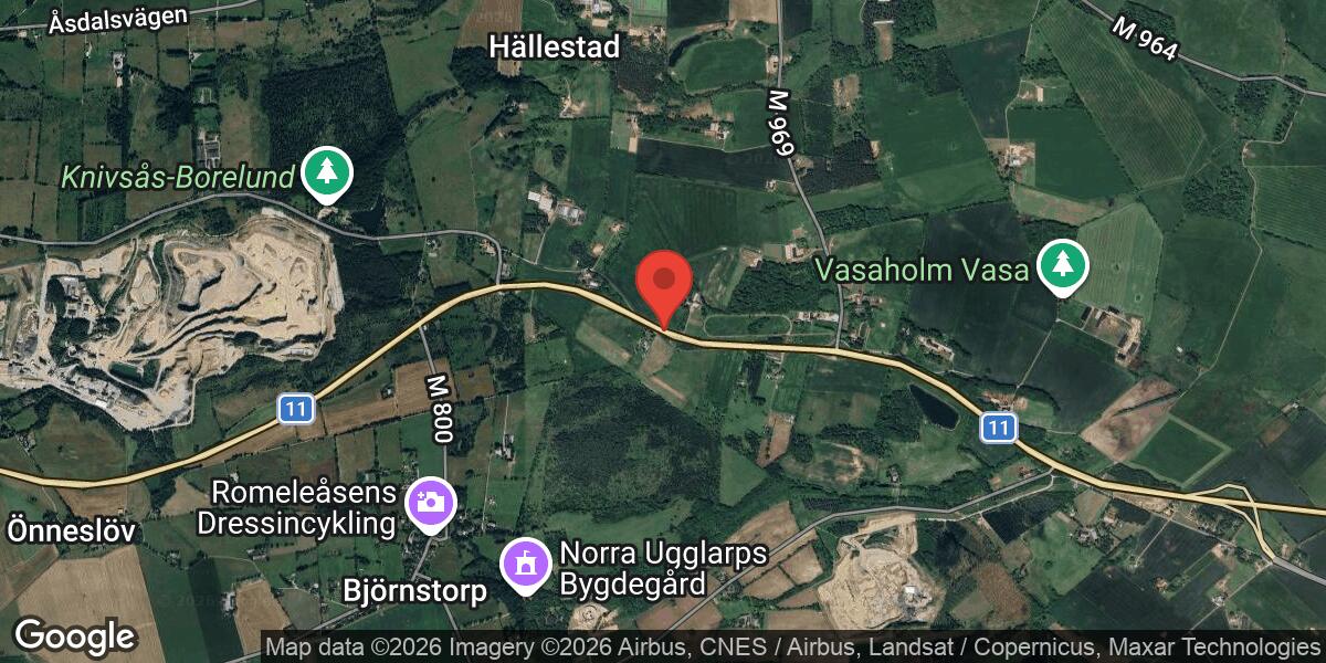Ett hinder på vägbanan har rapporterats på Väg 11 mellan Vasaholm och Granedal i riktning mot Malmö. Händelsen rapporterades klockan 11:36 och beräknas vara avhjälpt vid 12:38.